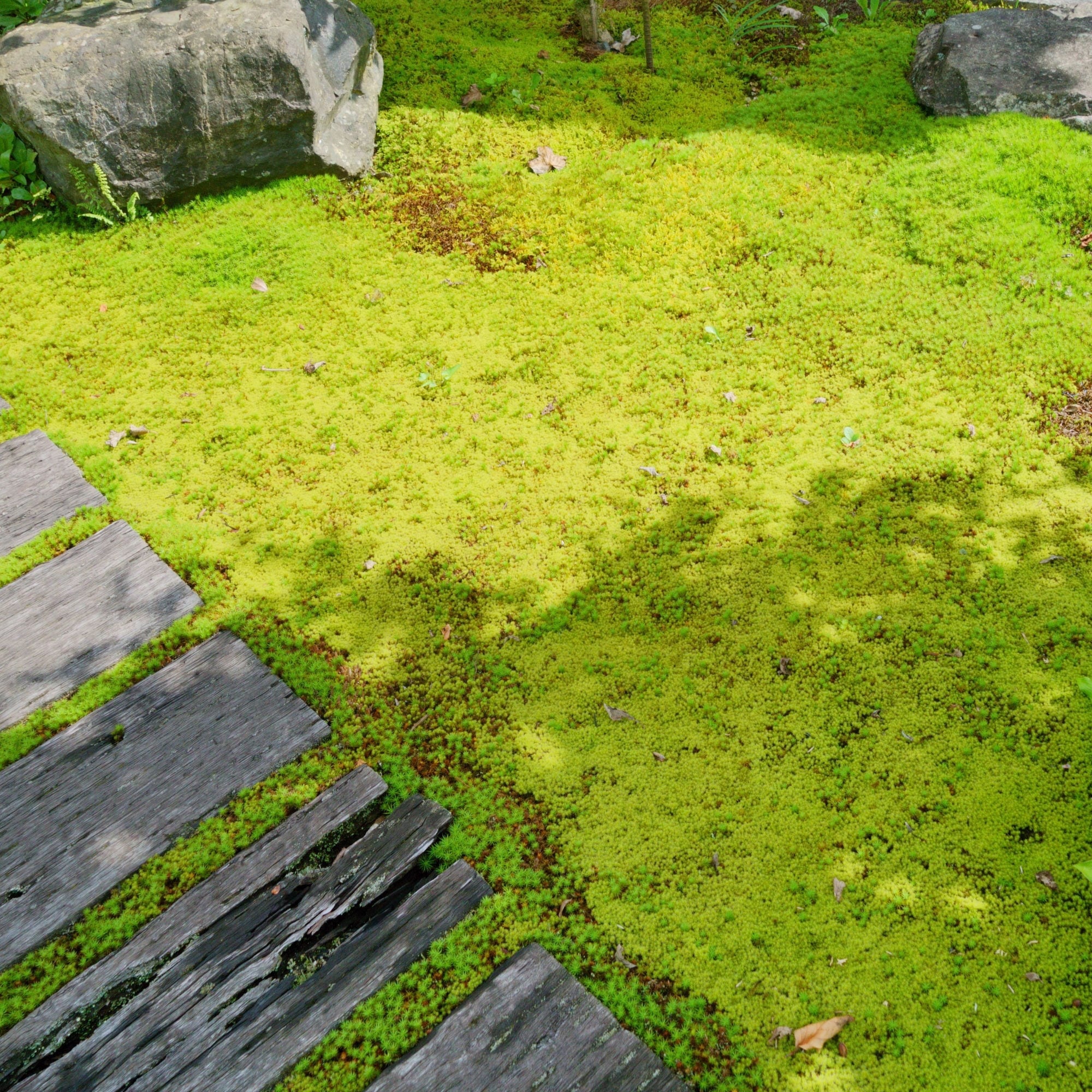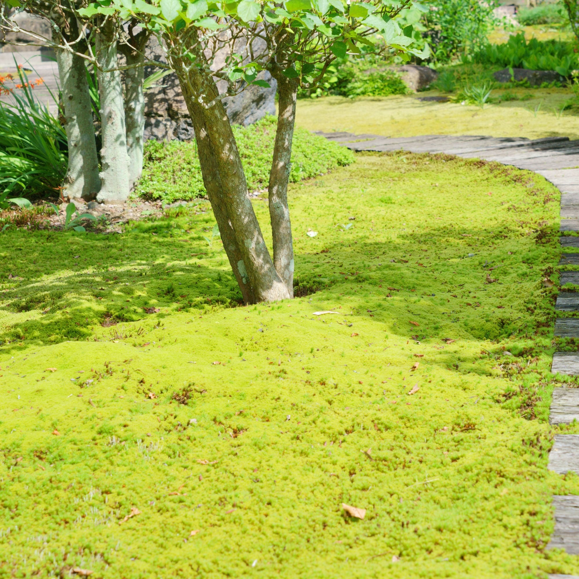 日当たりの良い庭苔で最も使われる苔の種類の一つ。日当たりから半日陰(時間帯により日陰になる場所)で良好に育成してくれます。